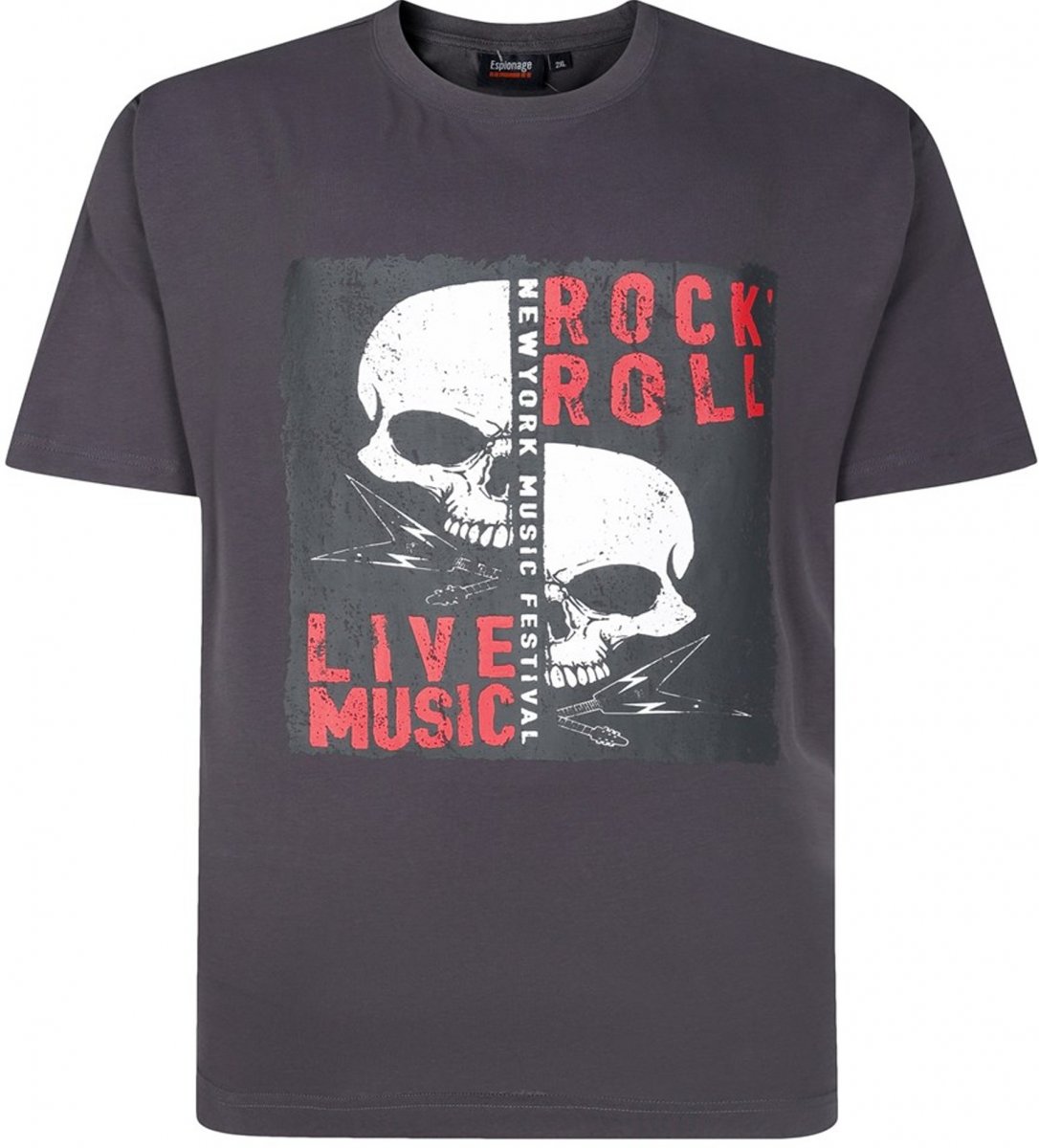 Οδηγός μεγεθών - Espionage T437 Rock N' Roll Printed T-Shirt Charcoal