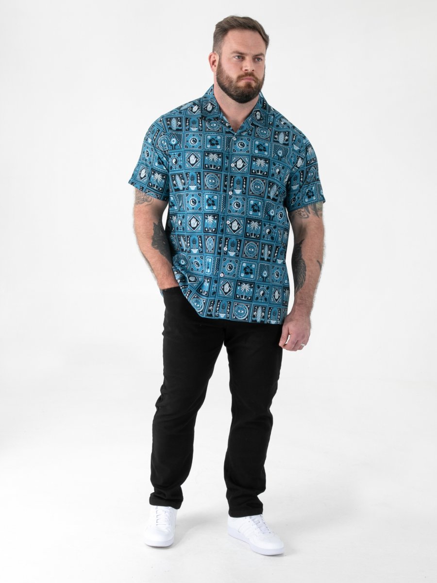 Οδηγός μεγεθών - D555 Hawkins Printed Cuban Collar Resort Short Sleeve Shirt Teal