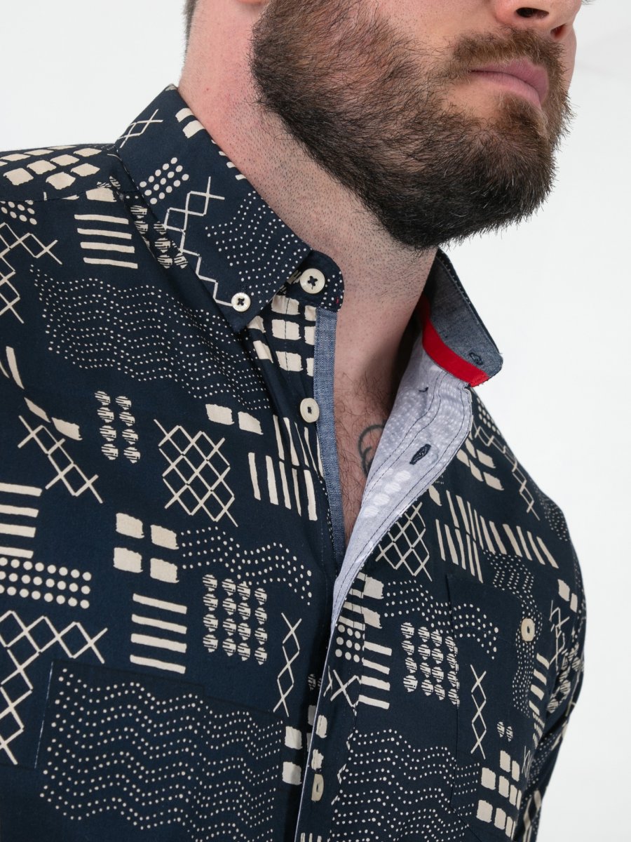 Οδηγός μεγεθών - D555 Rick Geometric Print Short Sleeve Shirt Navy