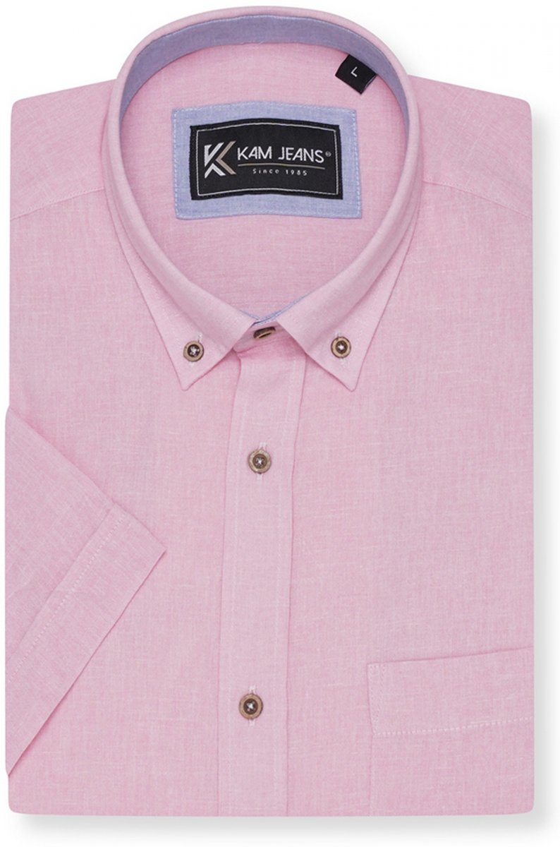 Οδηγός μεγεθών - Kam Jeans 6340 Linen Mix Short Sleeve Shirt Pink