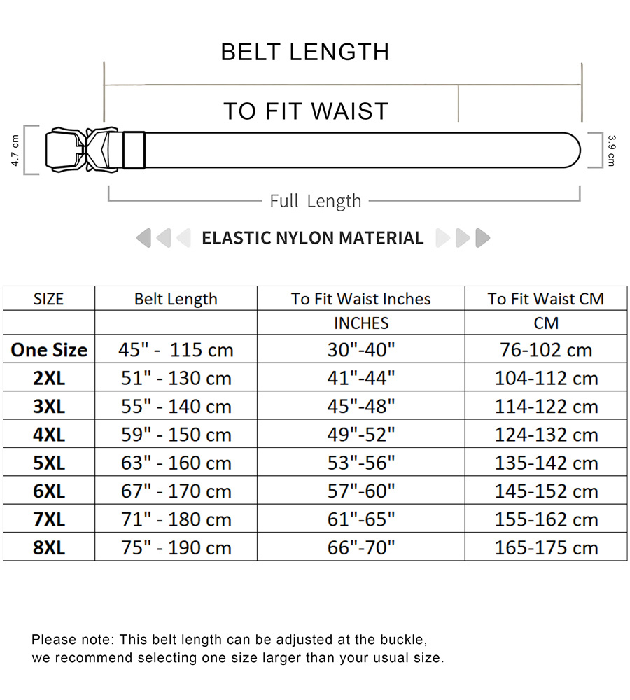 Οδηγός μεγεθών - D555 Dale Tactical Stretch Webbing Belt with Heavy Duty Quick Release Buckle Khaki