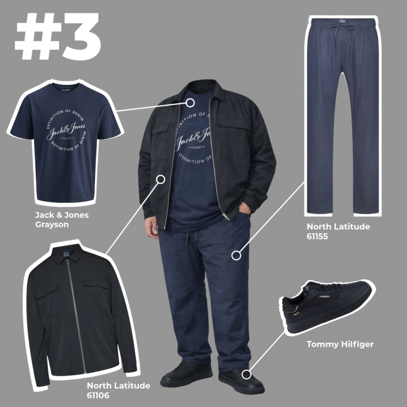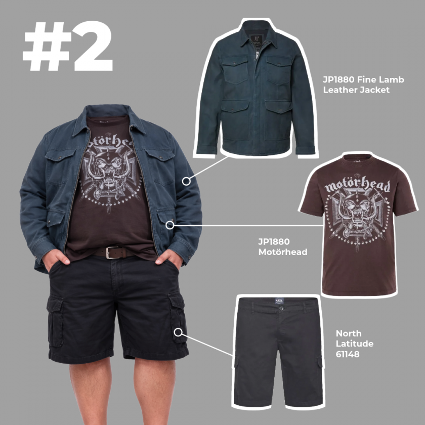 Μια καλή επιλογή για πιο δροσερές ανοιξιάτικες μέρες. Το μπουφάν προσφέρει ζεστασιά, το T-shirt κρατά την άνεση και το cargo σορτς προσθέτει πρακτικές τσέπες.