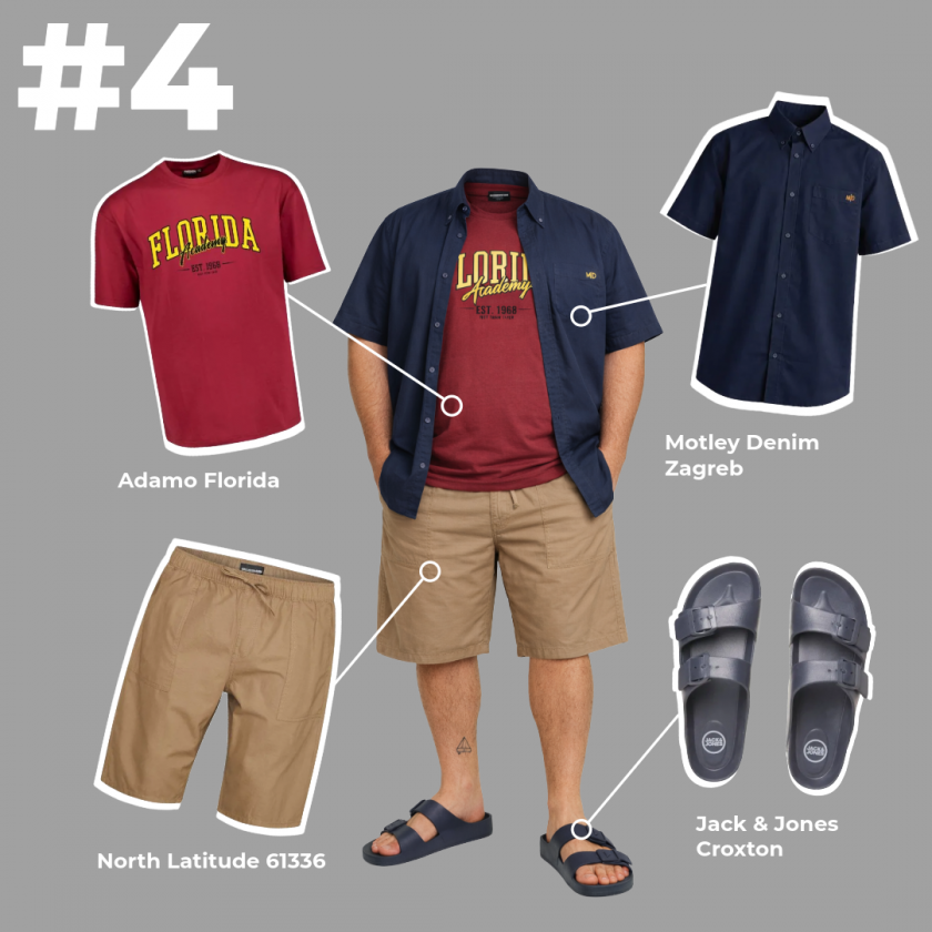 Χάρη στα ελαφριά layers, αυτό το outfit προσαρμόζεται εύκολα μέσα στη μέρα. Το T-shirt κρατά το σύνολο απλό, το κοντομάνικο πουκάμισο προσθέτει λίγη παραπάνω ζεστασιά και το κοντό τζιν σορτς με τα sneakers προσφέρουν καθημερινή άνεση.