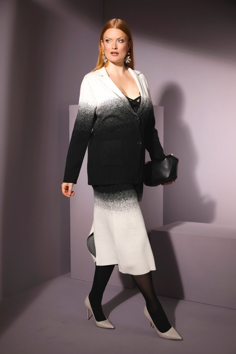 Οδηγός μεγεθών - Ulla Popken Πλεκτό Σακάκι Με Ντεγκραντέ Χρώματα Μαύρο/Λευκό