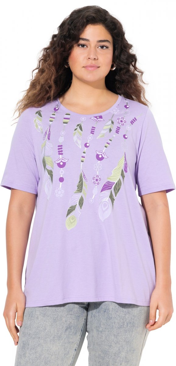 Οδηγός μεγεθών - Ulla Popken Metallic Feather Short Sleeve Graphic Tee Lavender