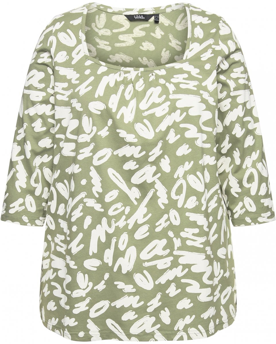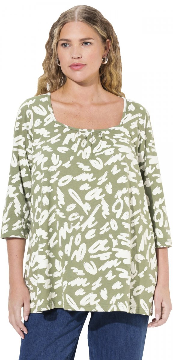 Οδηγός μεγεθών - Ulla Popken Scribble Print Square Neck 3/4 Sleeve Tee Sage Green