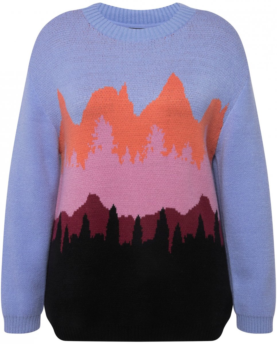 Ulla Popken Long Sleeve Knit Mountain Range Sweater Bright Purple