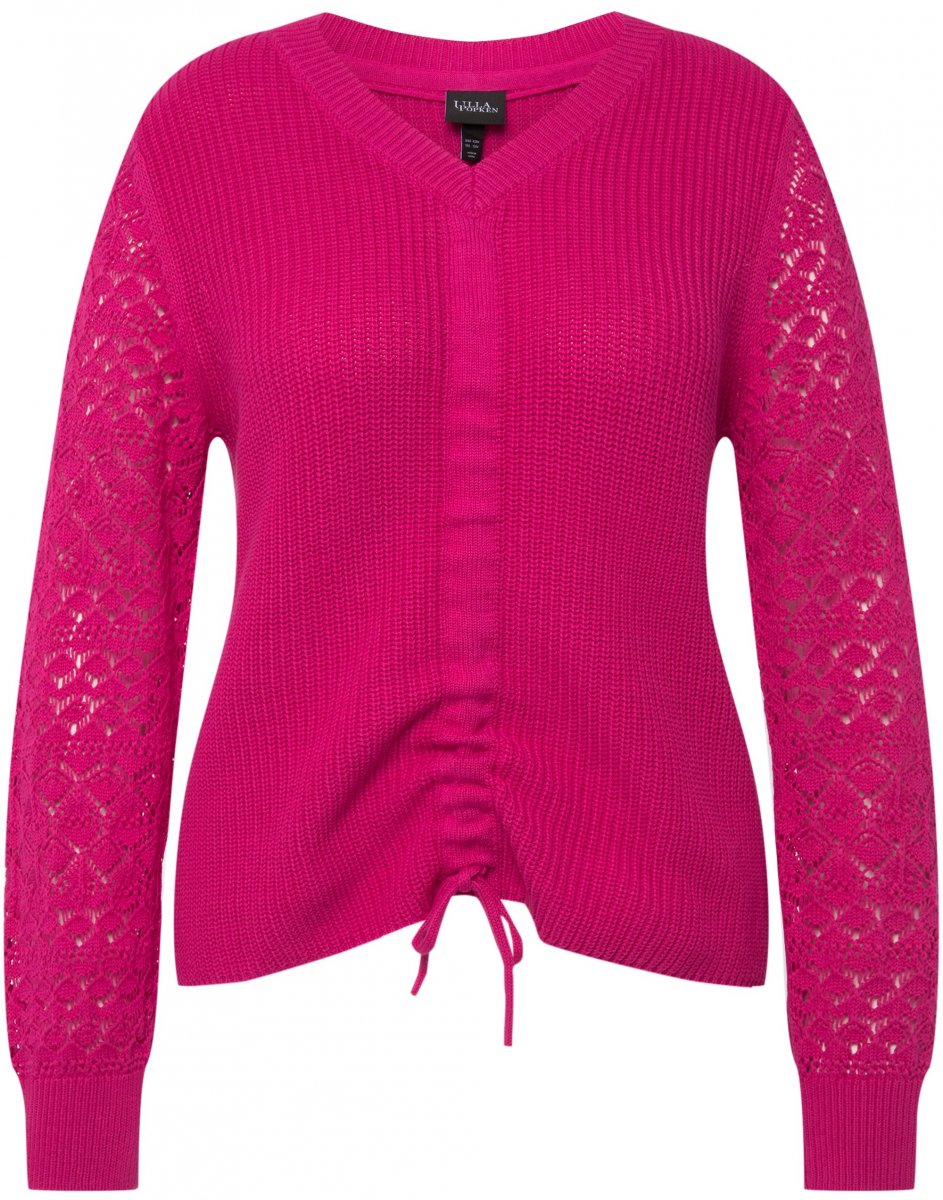 Οδηγός μεγεθών - Ulla Popken Shaker Stitch Cropped Gathered Sweater Fuchsia Pink