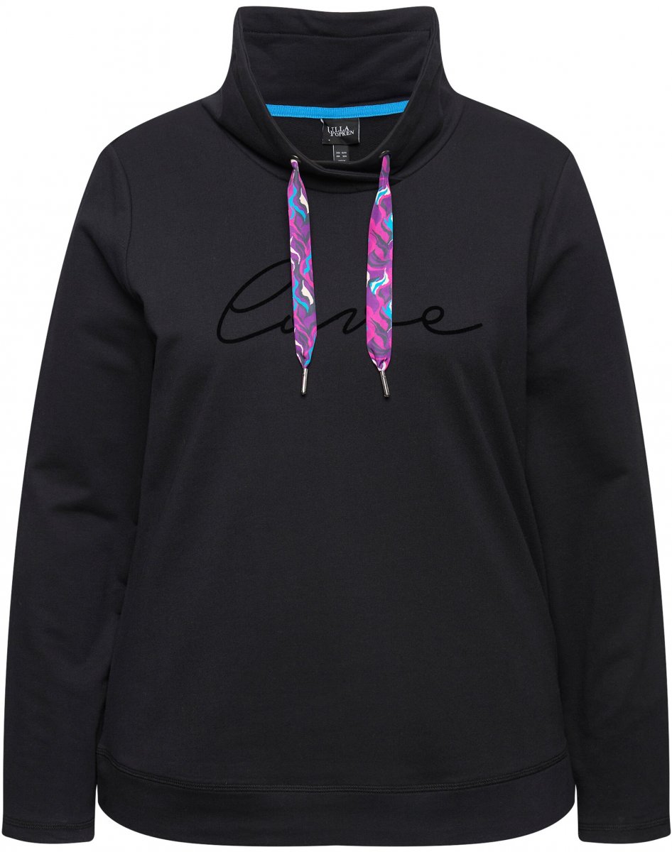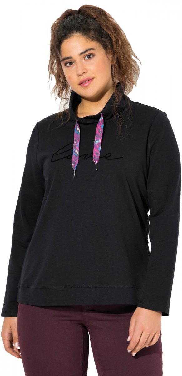Ulla Popken Stand-Up Collar Long Sleeve Sweatshirt Black
