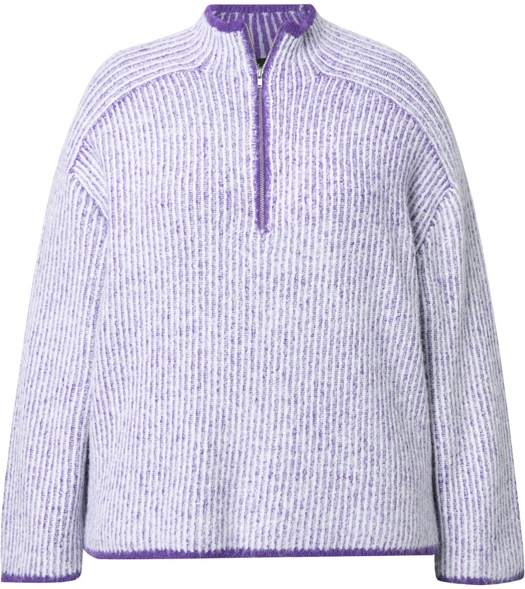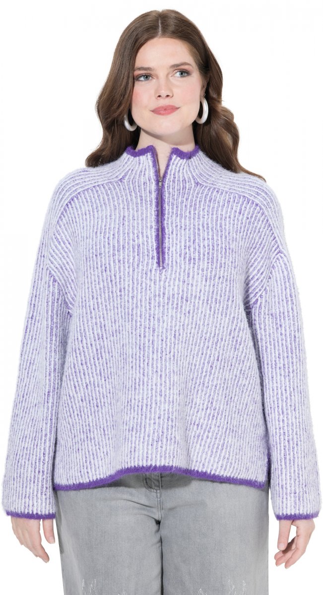 Οδηγός μεγεθών - Ulla Popken Striped Knit Long Sleeve Troyer Collar Sweater Purple