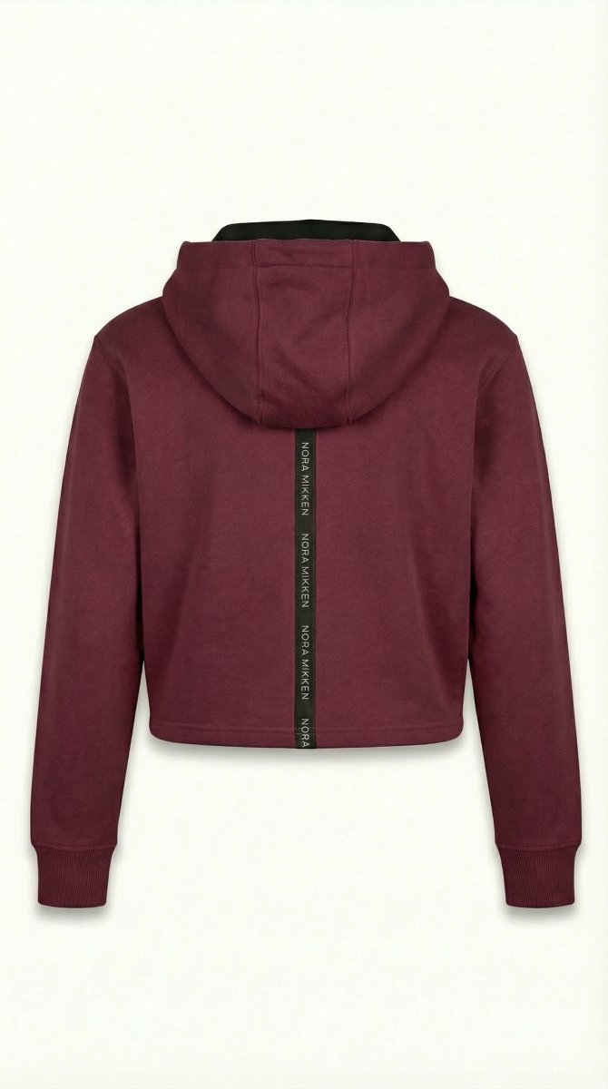 Κοντή μπλούζα με κουκούλαΔιαθέσιμο σε μεγέθη S-XXLΑπό το brand Nora MikkenΑπό 60% βαμβάκι, 40% πολυεστέραΦαρδιά γραμμήΤο χρώμα είναι μπορντόΚάντε κλικ εδώ για να δείτε τον οδηγό μεγεθών